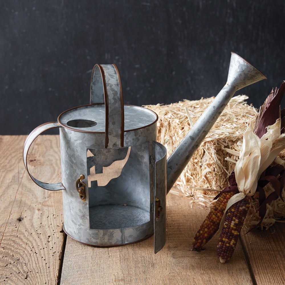 Portraying a ghastly smile carved into a watering can, our jack-o-lantern luminary will complete your outdoor Halloween decor. Illuminate the steps of a porch or set him on your tabletops for a unique look. Simply place a candle inside its hinged door to bring it to life. Item is made of galvanized metal.